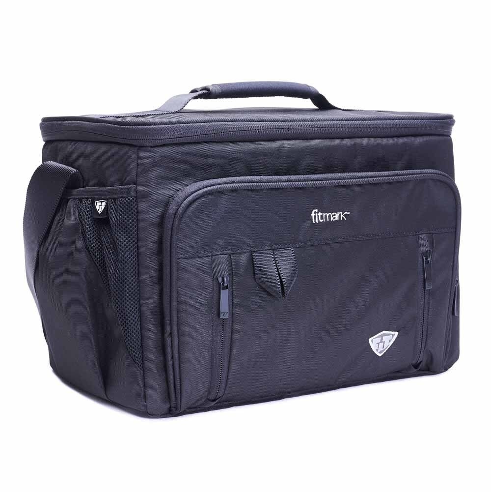 Smartes Design. Materialien von höchster Qualität. Innovative Funktionen. "The Trunk" hebt Meal Management Taschen auf das nächste Level. Sie ist leicht, tragbar, aus strapazierfähigem Polyester Nylon inklusive einem handfesten, gepolsterten und abnehmbaren Schultergurt. Die Organisation deiner Mahlzeiten wird einfach durch 4 x 1000 ml große dichte Essens-Behälter und 3 x 500 ml große Essens-Behälter, 3 Kühlpacks (TSA geprüft und BPA frei), einer Außentaschen für Wasserflaschen, Protein-Riegel oder Obst. Auch an einen eigenen Platz um deine Schlüssel zu verstauen wurde gedacht. Die Rückseite verfügt über eine Tasche für deine Zeitschriften und Magazine. "The Trunk" bietet mit dem einzigartigen Innensystem von Fitmark maximale Organisationsmöglichkeiten. Das ultimative Managementsystem? Kein Problem mit „The Trunk“.
