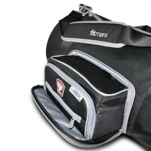Fitnesstasche. Reisetasche. Food Management Tasche. Ja, alle 3 in diesem neu gestalteten und patentierten Seesack vereint. Er verfügt über die herausnehmbare "the BOX ™ SM" mit den Cool-Packs und 2 übergroße Essens-Kontainer. Der "Transporter" Seesack beinhaltet Features, wie eine gepolsterte Soft-Touch-Laptop-Hülle, ein Sicherheitsgurtband, geprägte Metallreißverschlüsse und separate Stauräume für Schuhe und Wäschebeutel. Verwenden Sie die individuelle Mahlzeit Management Tasche "the BOX ™ SM", oder entfernen Sie sie und verwenden Sie den Platz für Ihr Fitness-Equipment.