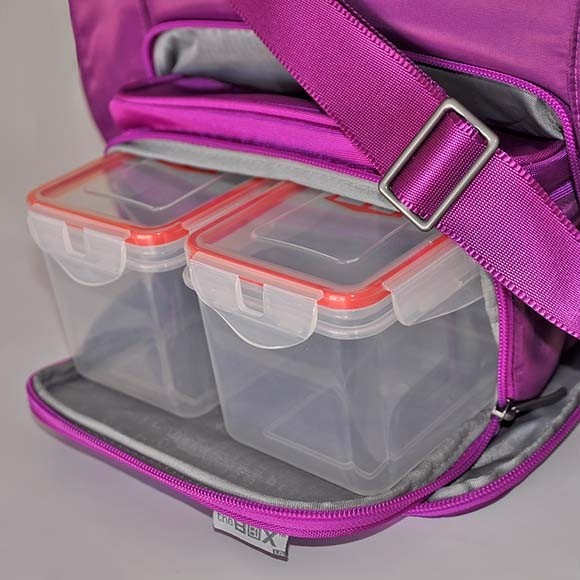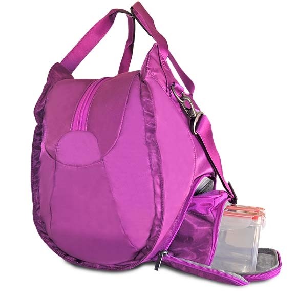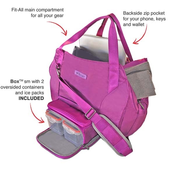 Sporttasche. Reisetasche. Meal-Management - Ja, alle 3 sind in der neu designten und patentierten Tasche enthalten. Diese Tasche enthält eine herausnehmbare BOX ™ SM mit zwei Ice Packs und zwei dichten Meal-Containern. Aber sie kann noch mehr – sie enthält einen abnehmbaren Schultergurt, speziell geprägte Metallreißverschlüsse und an der Rückseite ein Steckfach für alle Ihre kleinen Gegenstände. Verwenden Sie das Meal-Management Fach für die BOX ™ SM, oder entfernen Sie diese und verwenden Sie das Fach für Ihre Fitness-Studio und Reise-Accessoires. Somit kommt der dadurch frei werdende Raum uneingeschränkt zum Einsatz. Also los – Haben Sie Spaß mit dieser Schönheit in Lavendel!