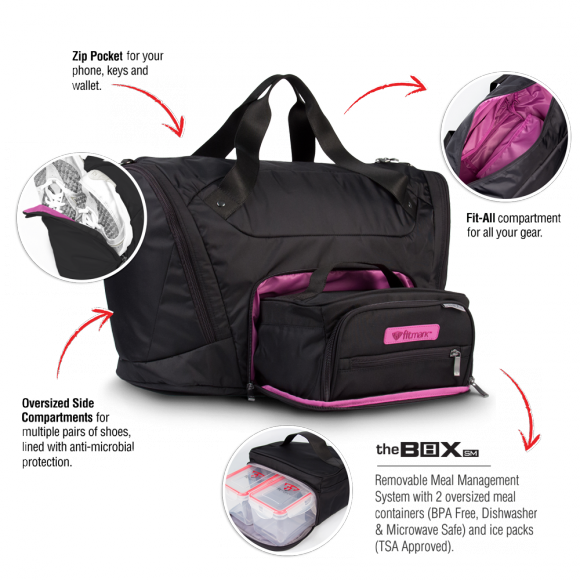 We believe this is one of the greatest meal prep bags of all time. Seriously. A perfectly crafted duffel bag in all of its glory, with our patent-pending, removable meal management system, with its 2 oversized meal containers (BPA Free, Dishwasher and Microwave Safe) and 2 ice packs (TSA approved). The bag has plenty of room to fit your gym and travel gear, with pockets galore. And the color? Yeah, that's one of the best parts. It's absolutely beautiful!