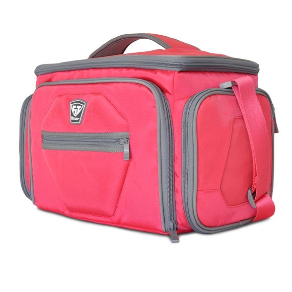 Sweet design. Highest quality materials. Innovative function. The Shield is taking meal management bags to the next level. It’s lightweight, portable, with tough polyester nylon and a heavy-duty, padded and removable shoulder strap. Easily organize your meals with 5 large seal-tight containers, two cool packs (one that is TSA approved), a custom vitamin and protein mix dispenser, and two super smart expandable exterior pockets for your water bottle, protein bars and fruit. There's even a place to hang your keys. The back exterior includes a luggage connector and sleeve for your journal and magazine. The Shield comes with the Fitmark swivel-action center divider that pivots for maximum organization. The Shield makes it simple to go to work, hit the gym and still have a healthy meal eight hours later. The ultimate health management system? It’s in the Shield.